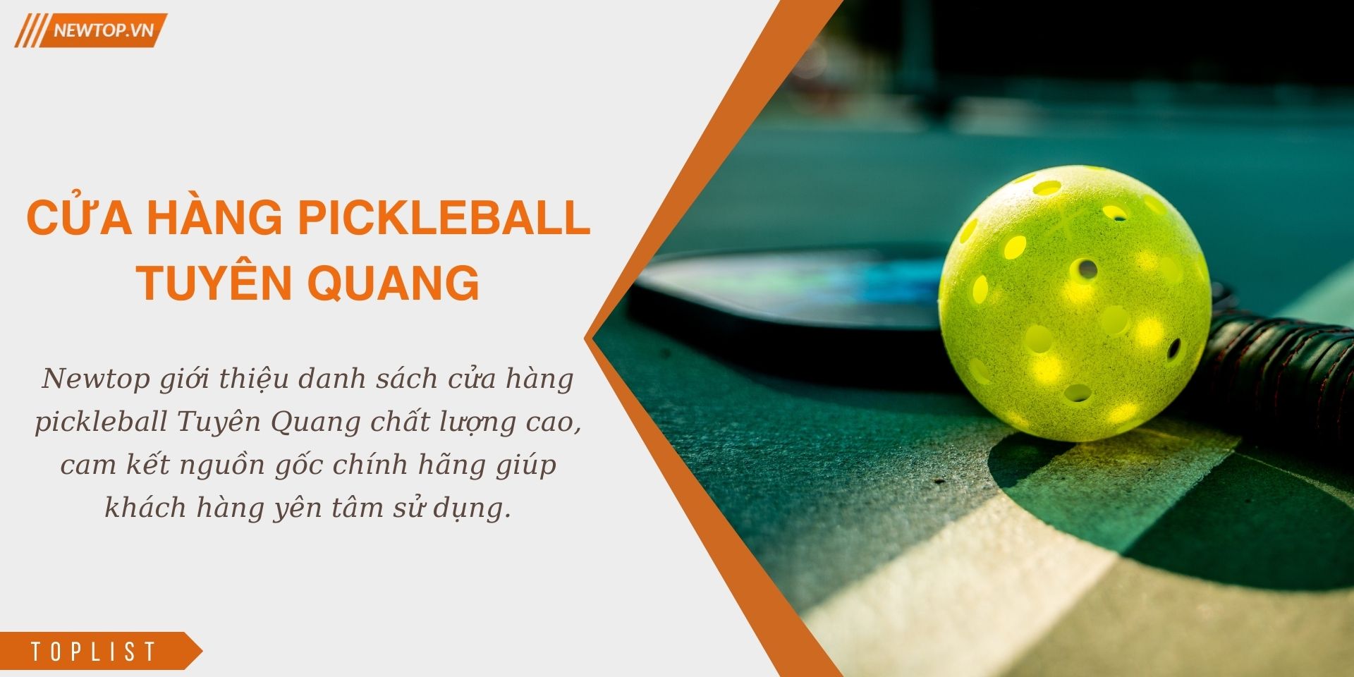Môn pickleball ngày càng thu hút nhiều người yêu thể thao tại Tuyên Quang bởi cách chơi linh hoạt, sôi động và phù hợp với mọi lứa tuổi. Điều này dẫn đến nhu cầu tìm kiếm các cửa hàng pickleball Tuyên Quang chất lượng với giá cả hợp lý ngày càng tăng cao. Nắm bắt được xu hướng này, Newtop đã tổng hợp danh sách các cửa hàng pickleball tại tỉnh Tuyên Quang, bao gồm những địa chỉ uy tín, cung cấp hàng chính hãng, tư vấn nhiệt tình, giúp người chơi dễ dàng chọn được sản phẩm ưng ý. Hãy cùng tham khảo ngay!